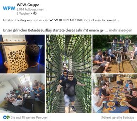 Das erstellte LinkedIn-Unternehmensprofil für die WPW-Gruppe ist der übergeordnete Rahmen für alle WPW-Unternehmen, die sich dort aktiv einbringen können. Dadurch wird einerseits die zugehörige Verbundenheit zum Ausdruck gebracht und andererseits eine koordinierte, abgestimmte Kommunikation und Außendarstellung möglich. Separate Profile für einzelne Unternehmen/Standorte sind daher nicht vorgesehen, eine aktive Beteiligung aller ist aber ausdrücklich erwünscht und wird aktiv unterstützt.