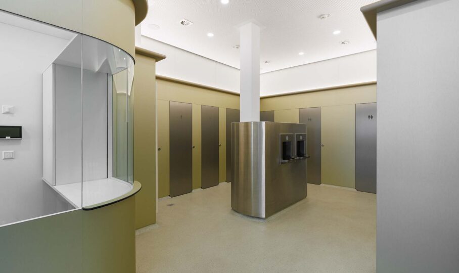 In diesem Zuge wurde auch die öffentliche WC-Anlage im Erdgeschoss des Gebäudes saniert. Es ist eine zukunftsfähige Anlage mit Unisex-Angebot entstanden.