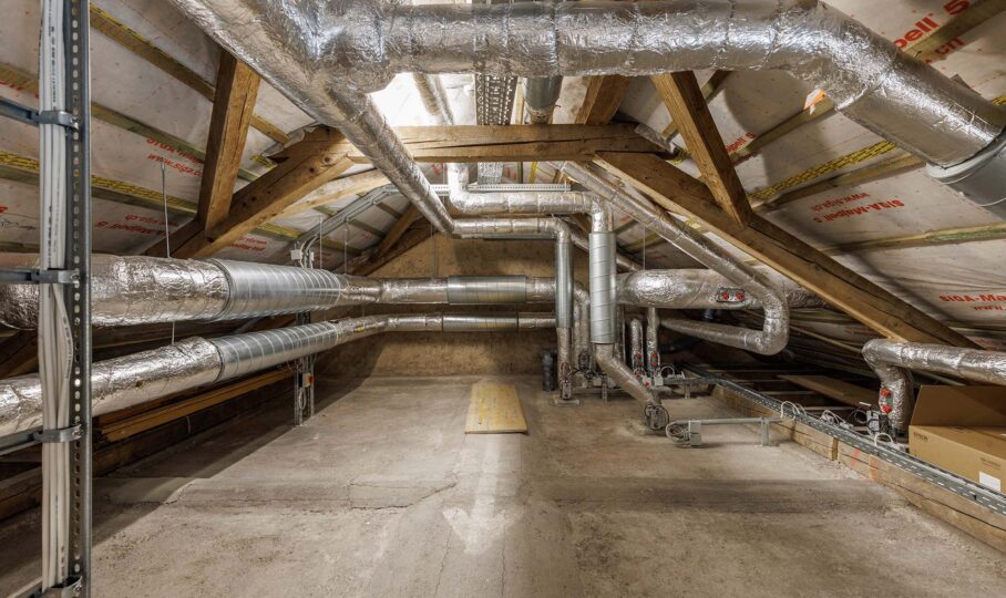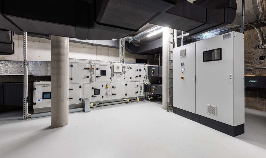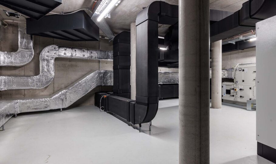 Besonders herausfordernd waren die Arbeiten im denkmalgeschützten Bestand, insbesondere die Integration der Klimatechnik in die historischen Baustrukturen sowie die sichtbar gestaltete Installation im Untergeschoss. Das Ergebnis ist ein Ort, an dem sich denkmalgerechte Bausubstanz und moderne Gebäudetechnik in überzeugender Weise verbinden.